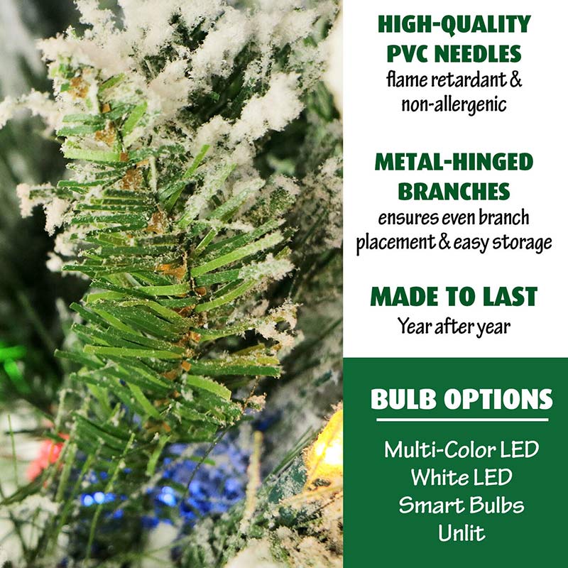 Fraser Hill Farm 10′ Snowy Pine Tree with Multi-Colored LED Lights Features: