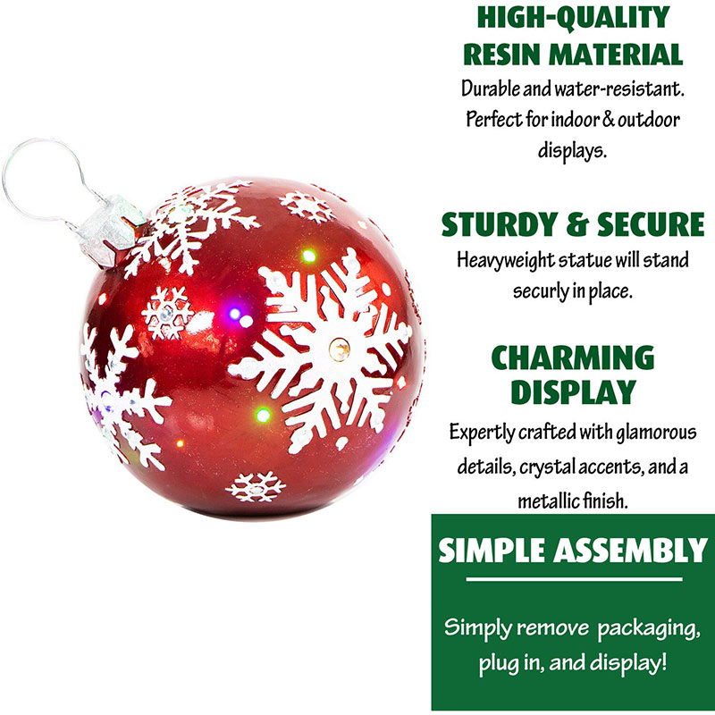 - OVERSIZED: Jeweled ball ornament with snowflake design measures 18″H x 16.5″W x 19.25″D and weighs 8 lbs.