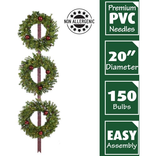 Hidden battery packs provide easy, cordless operation and flexible placement. The number of tips on each wreath ranges from 300-360 (depending on the size you select) so there’s plenty of room to add your own ornaments and accessories to create your own custom design. Display this set on your door and greet each guest with holiday cheer that will last from one season to the next.
