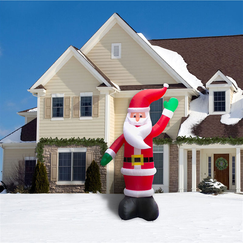 - PRE-LIT: Brighten your lawn, garden, yard, open porch, or deck with this blow-up Traditional Santa that illuminates day and night with 9 internal white LED lights.