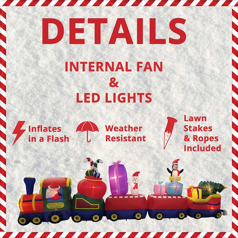 - Christmas Train – airblown inflatable illuminates day and night with 16 internal white LED lights
