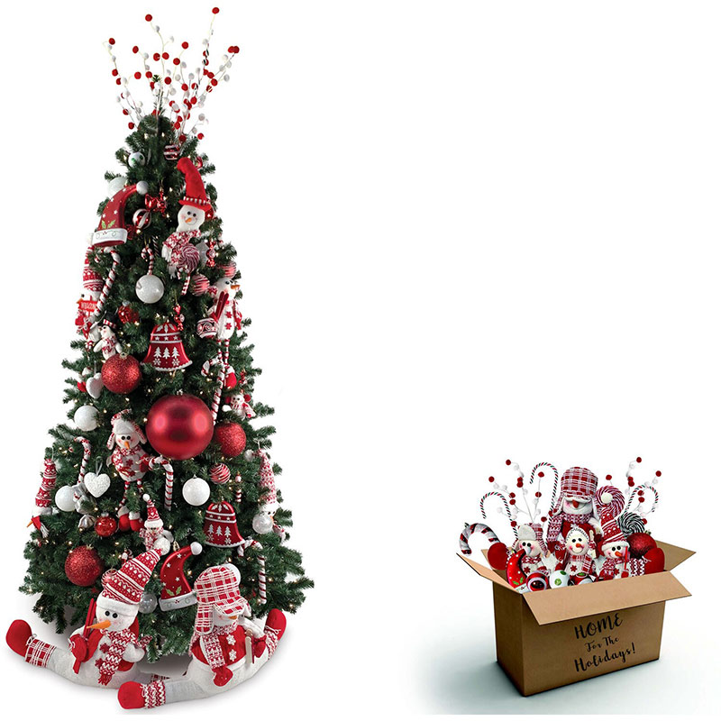 - Curated 225-piece peppermint-themed Christmas ornament set for trees up to 12-feet tall with plenty more decor for your mantel, door, and floor!