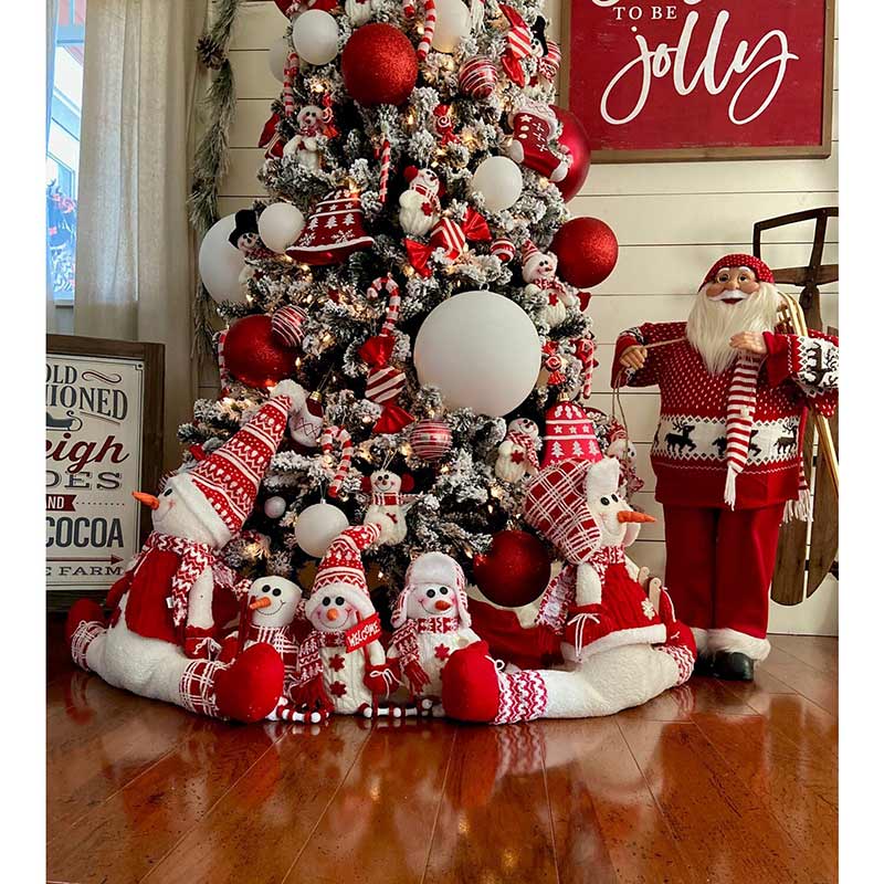 Fill your entire home with this complete holiday decor set from Fraser Hill Farm. Whether you’re just starting your Christmas Collection or adding onto an existing one, enjoy this themed decoration set to give your home a festive, cohesive look for the holidays. Trim your tree, deck your halls, and place these festive accents just about anywhere you can imagine. Everything you need to decorate your Christmas tree is included: peppermint themed decorations and over 200 ornaments, but it doesn’t stop there! Plush draft dodgers and tabletop critters complete a cohesive look throughout your house. This set’s ornaments vary from classic, glittered baubles to plenty of yummy faux-candies to complement their peppermint-themed snowman counterparts. The hard work of curating your decorative holiday collection is already done for you with a Home for the Holidays set from Fraser Hill Farm. All you have to do is decorate and celebrate!