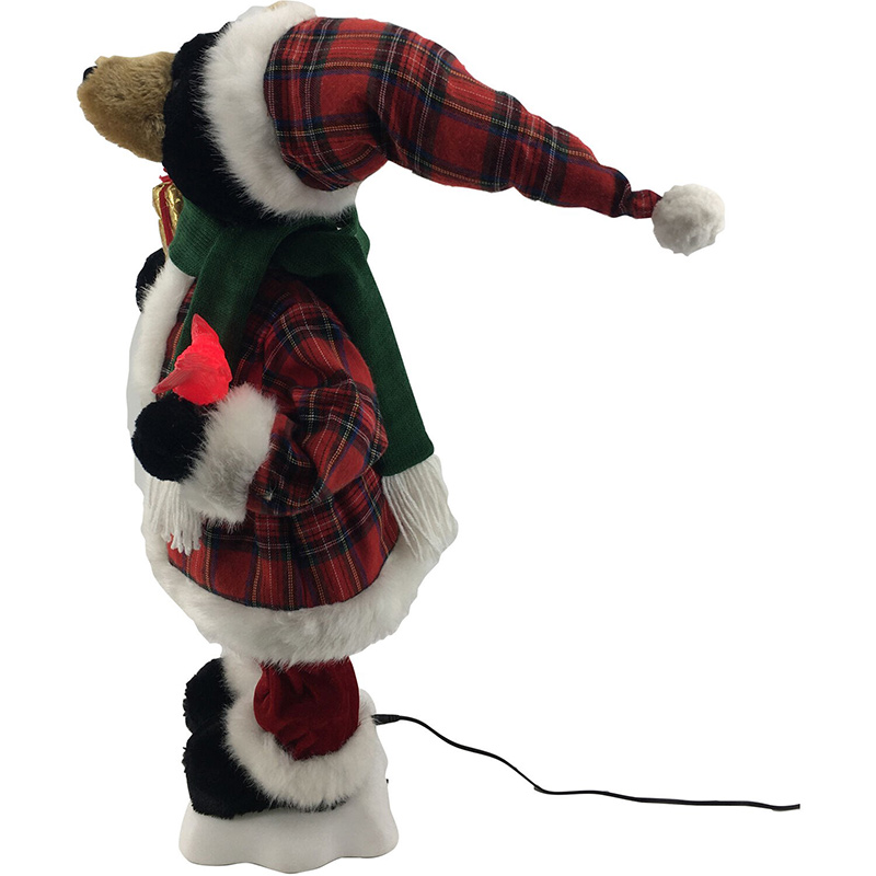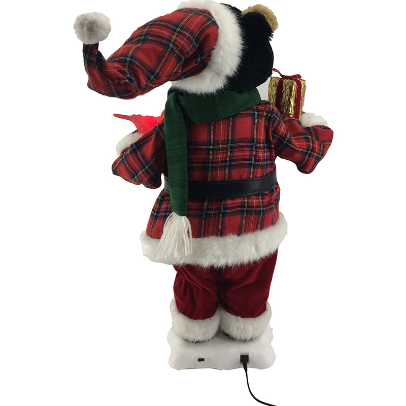 Fraser Hill Farm 24″ Animated Musical Black Bear Santa Holding Cardinal Features: