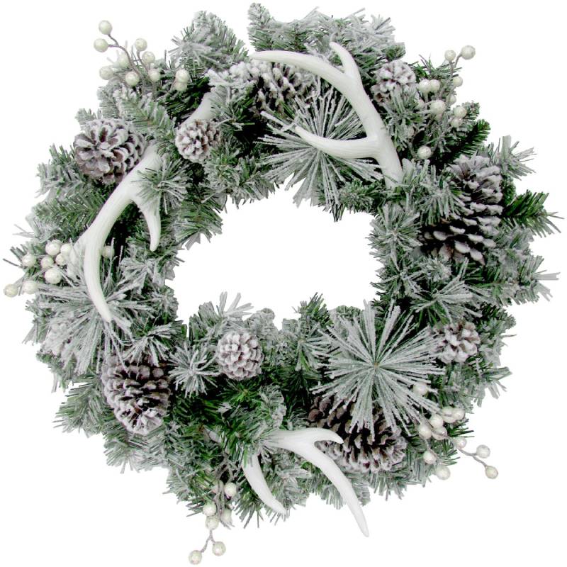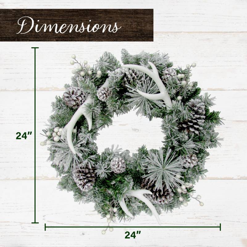 Fraser Hill Farm 24″ Antler and Pinecone Wreath on PVC Features: