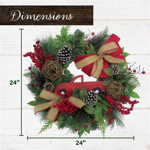 Fraser Hill Farm 24″ Wreath with Bows and Truck and 9′ Garland Set