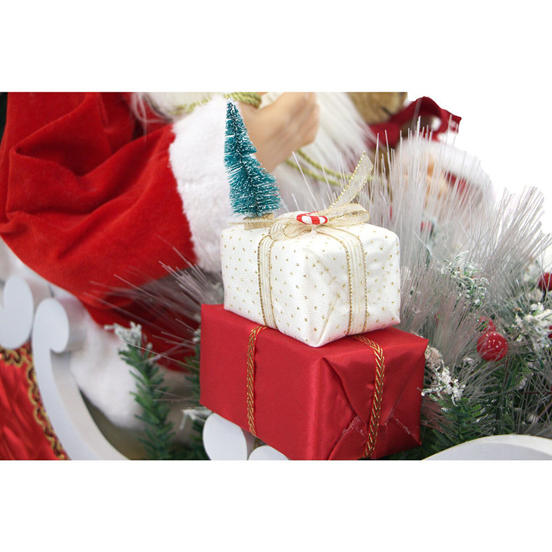 - CHRISTMAS SPIRIT: This Santa Claus figurine will will brighten your holiday decor while his sleigh lights up the room with 9 LED lights.