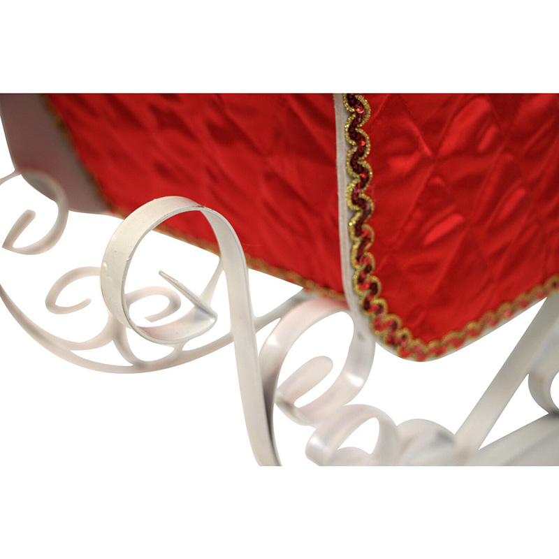 - Quilted red sleigh is packed with wrapped gifts and greenery that lights up with 9 white LED lights