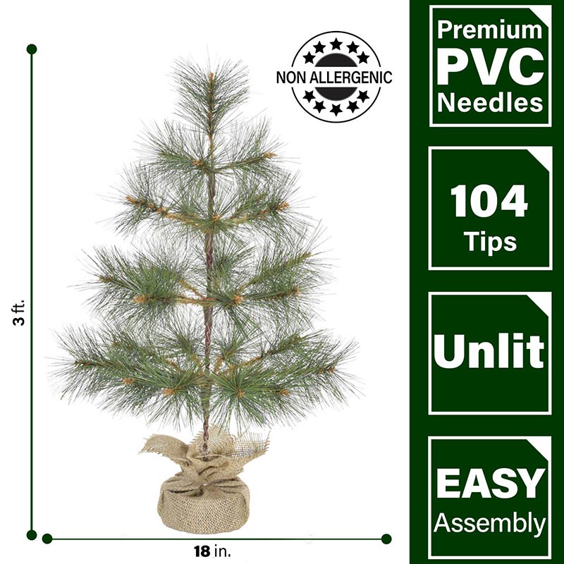 - DESIGNER FINISHES: This modern farmhouse inspired wispy pine tree set is finished with a burlap base and is the perfect addition to your holiday decor. Suitable for indoor or covered outdoor display.