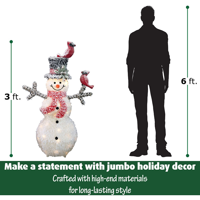 - 3 FEET TALL: This cheerful snowman with 2 perched cardinals will be the ideal centerpiece for your Christmas decor (measures 35.4″H x 21.7″W x 11.8″D).