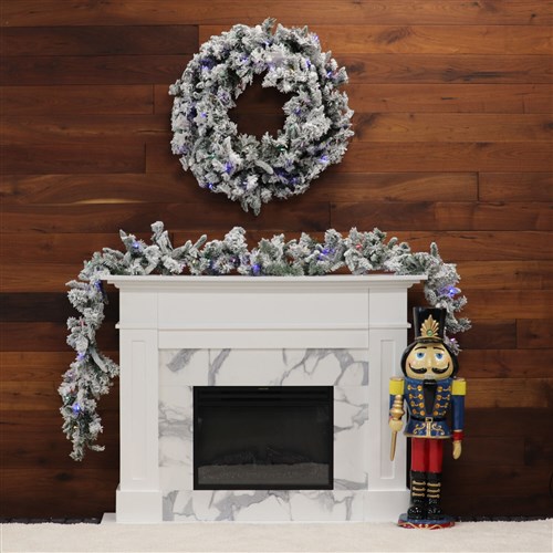 Spruce up your holiday decor with a Mountain Pine flocked artificial wreath from Fraser Hill Farm. Whether you deck the halls indoors or outdoors, invest in a quality wreath that will last year after year. This wreath features a flocked finish designed to resemble freshly fallen snow. It’s pre-strung with battery-operated LED string lights that add a sparkle and holiday charm to the overall display.