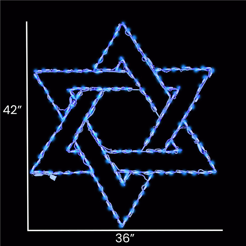 - Giant Star of David light measures 42 inches tall x 36 inches wide
