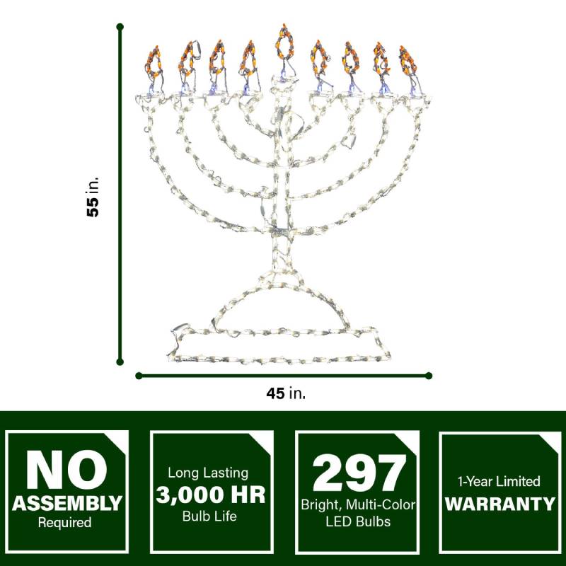 - Giant Hanukkah Menorah measures 55 inches tall x 45 inches wide