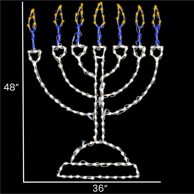 - Giant Hanukkah Menorah light measures 48 inches tall x 36 inches wide