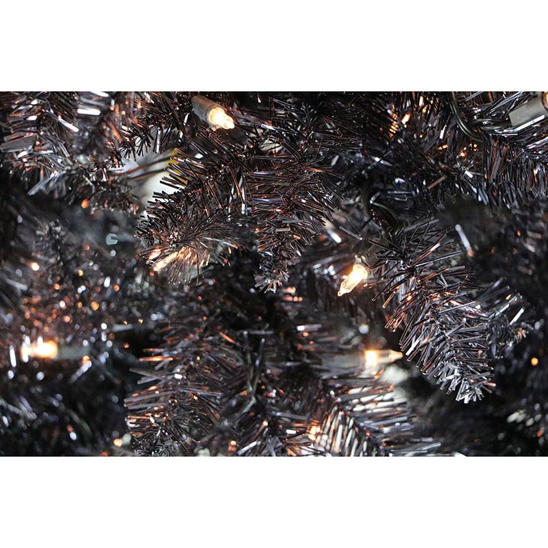 Fraser Hill Farm 5′ Black Festive Tinsel Christmas Tree with Clear Lights Features: