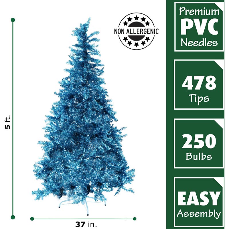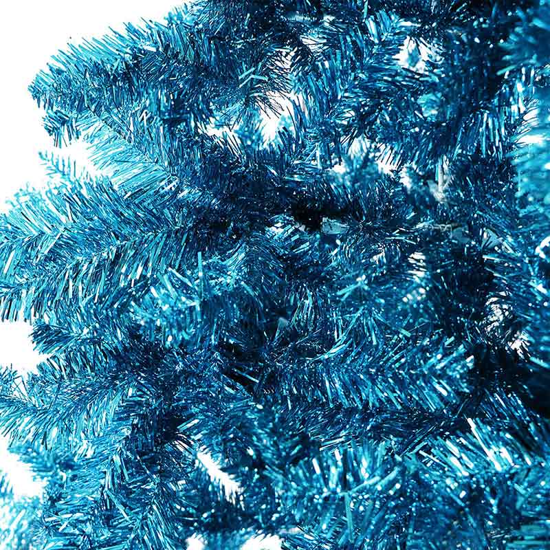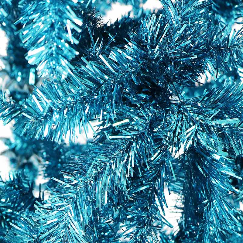 - COLORFUL FASHION FINISH: Shiny tinsel in a bright turquoise hue puts a playful twist on your Yuletide decorating. Use as your main tree with traditional decorations or as your family’s second tree to hold all the kid’s precious handcrafted ornaments. Use in your man cave to represent your favorite team.