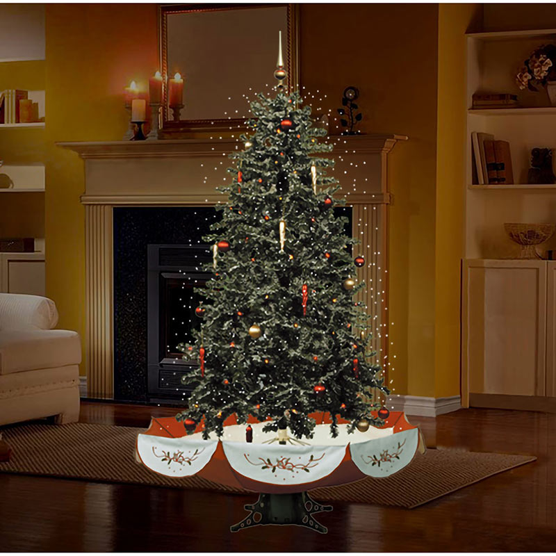 - Green pine tree with 377 branches and red umbrella base