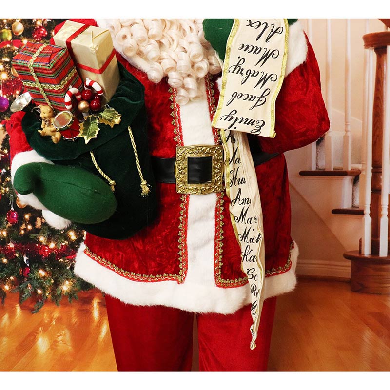 Fraser Hill Farm 59″ Santa Holding A Gift Sack and Scroll Features: