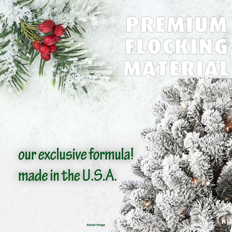 - NOT YOUR AVERAGE ARTIFICIAL TREE: 1155 flocked, full and dense lifelike tips create the appearance of a natural cut tree. Our premium fade resistant flocking material is MADE IN THE USA.