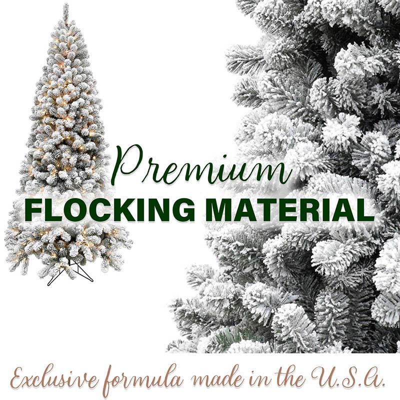- NOT YOUR AVERAGE ARTIFICIAL TREE: 1155 flocked, full and dense lifelike tips create the appearance of a natural cut tree. Our premium fade resistant flocking material is MADE IN THE USA.