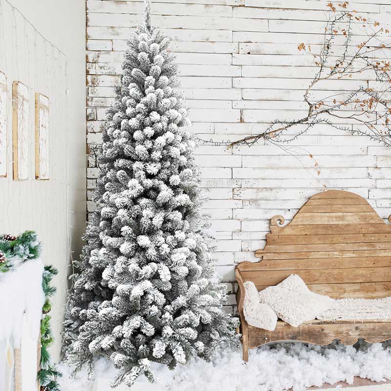 - Flocked Alaskan Pine artificial Christmas tree