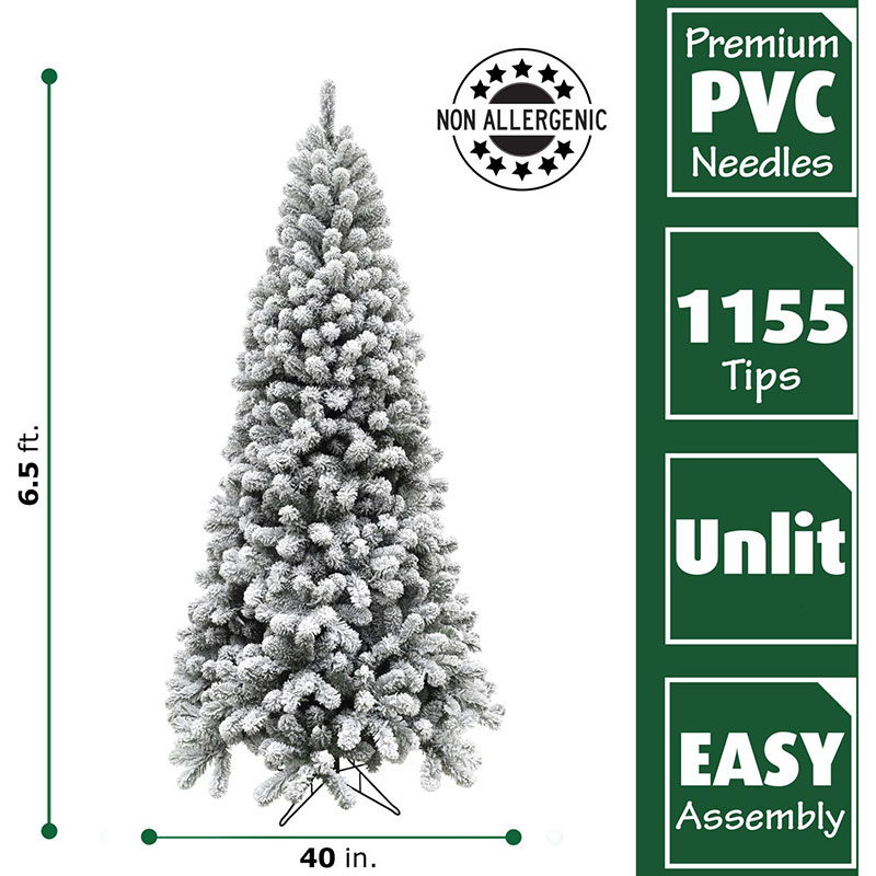 - 6.5-FOOT TALL: Standing 6.5-ft. tall with a 40-in. diameter this beautiful snow covered tree will fit perfectly in your room with 8-ft. to 9-ft. ceilings. Deep, layered branches hold all of your ornaments.
