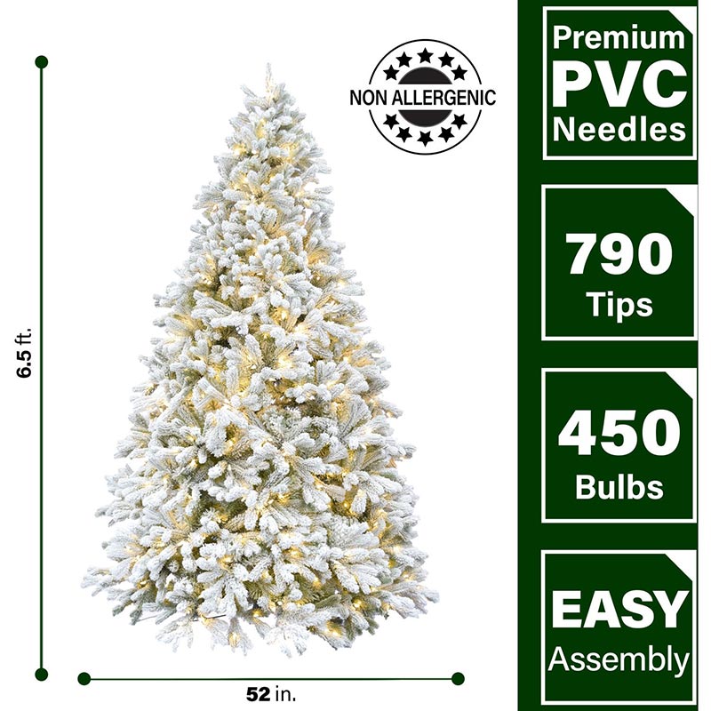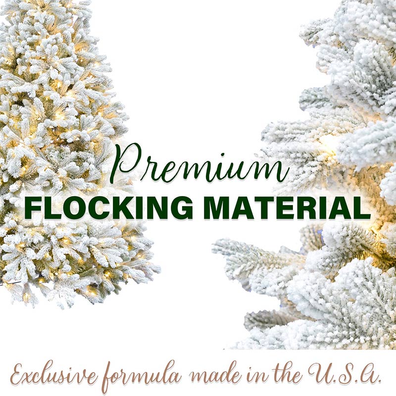 - NOT YOUR AVERAGE ARTIFICIAL TREE: 790 snow flocked covered lifelike tips create the appearance of a natural cut tree. Our premium fade resistant flocking material is MADE IN THE USA.