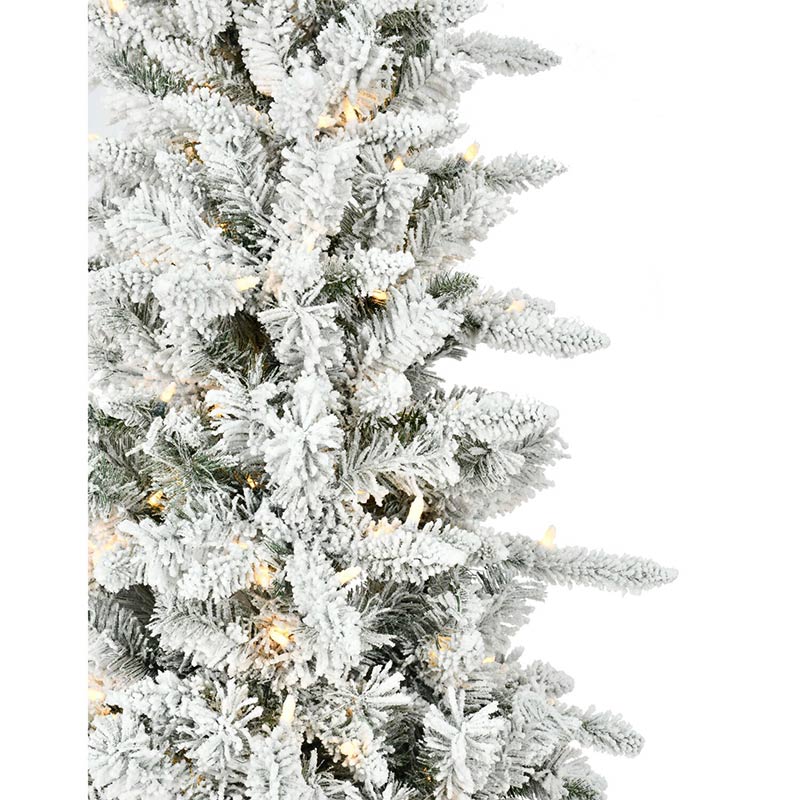 - NOT YOUR AVERAGE ARTIFICIAL TREE: Crafted with 638 white snow covered realistic, lifelike tips that create the appearance of a traditional natural cut tree. Our premium fade resistant flocking material is MADE IN THE USA. For indoor use only.