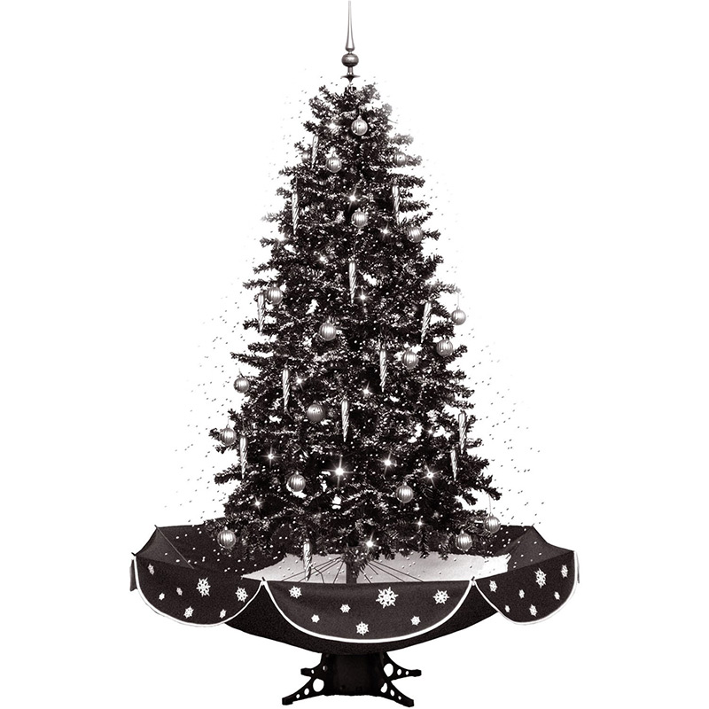- Black pine tree with 559 branches and black umbrella base with snowflake design