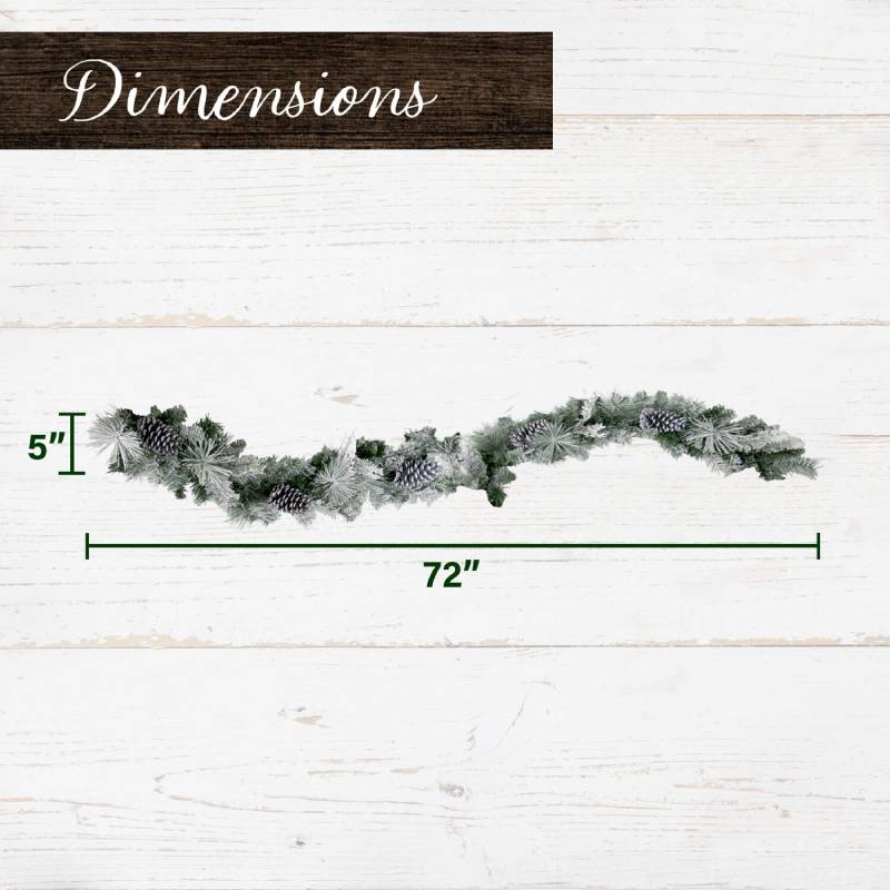 Fraser Hill Farm 6′ Mixed Pine and Pinecone Snowy Garland Features:
