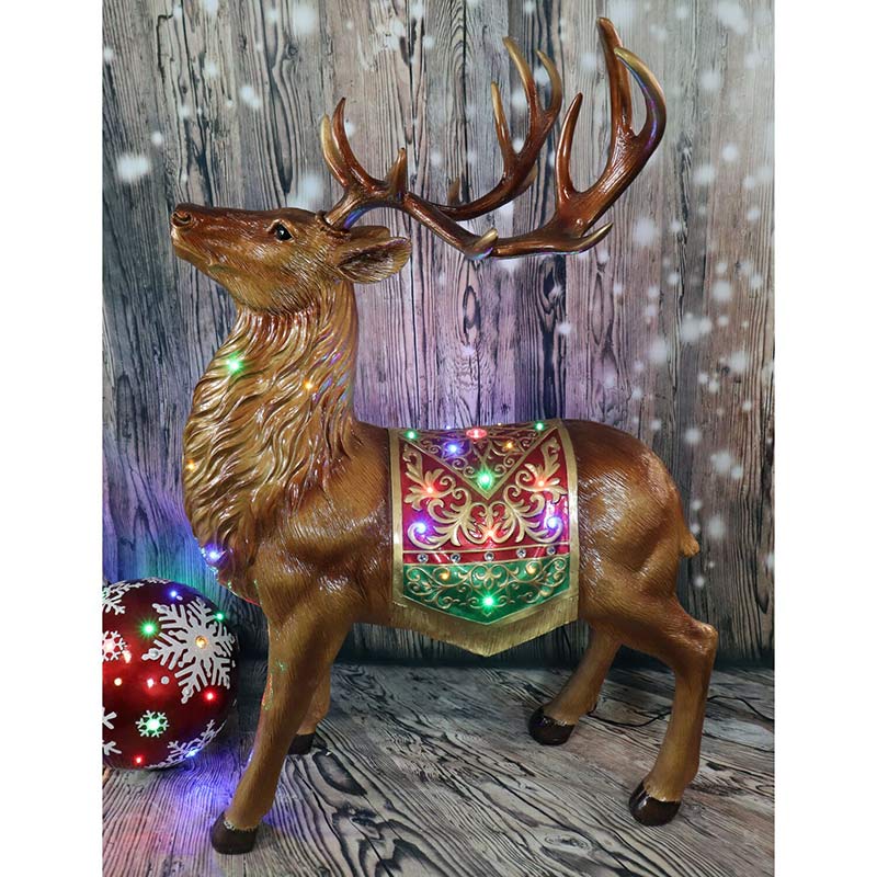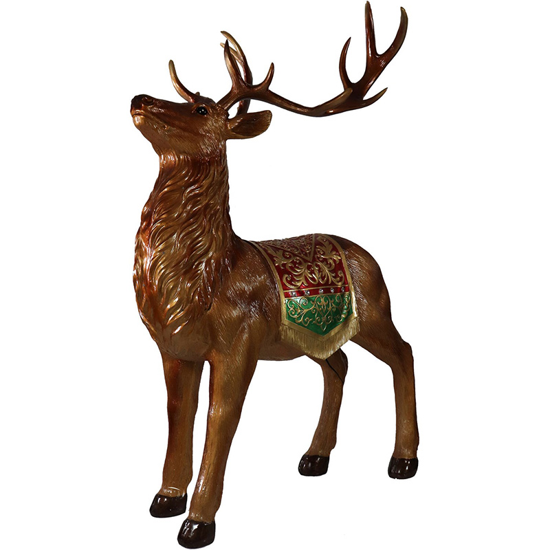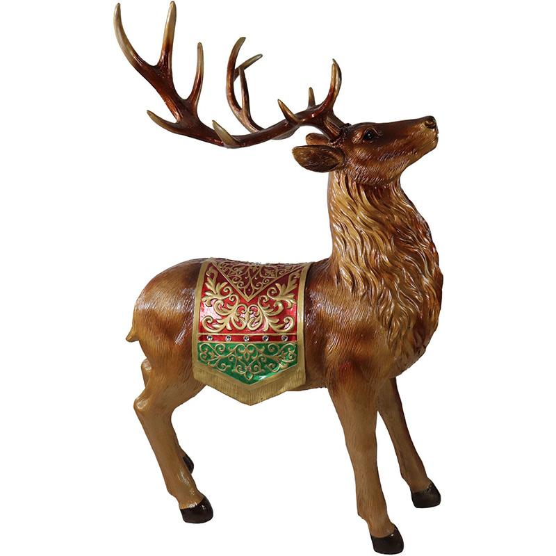 - Standing reindeer with majestic antlers measures 60″H x 39.5″W x 34″D