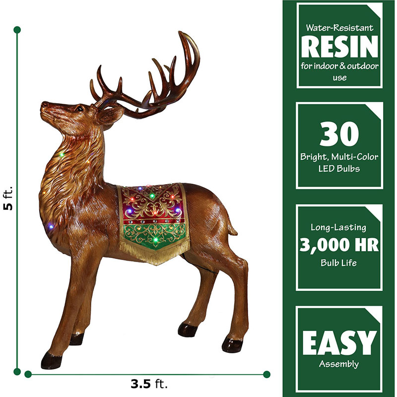 Fraser Hill Farm 60″ Reindeer with Multi-colored LED Lights Features: