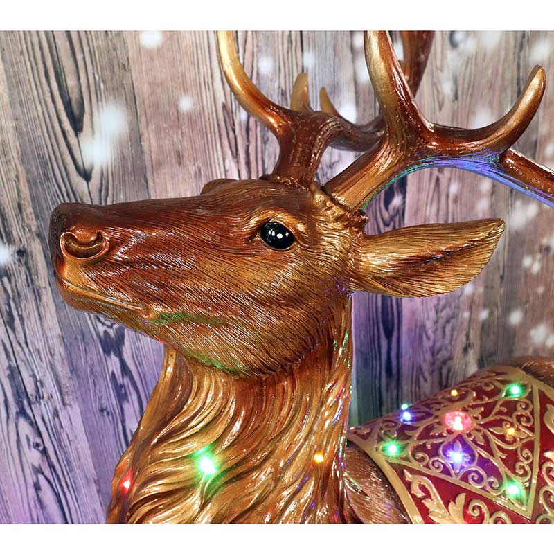Collect them all! This majestic standing reindeer, all aglow with a metallic finish and 30 multi-colored LED lights, will look elegant on your front lawn. Pair it with our sitting reindeer to create impact (sold separately) or display alone as a beautiful statement piece. For irresistibly unique decor that celebrates the spirit of Christmas, count on quality products from Fraser Hill Farm.