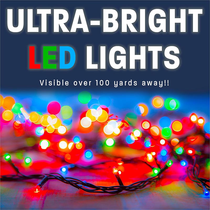 - 20 multi-color LED lights provide up to 3000 hours of bulb life and are visible over 100 yards away