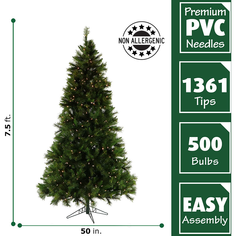 - 7.5-FOOT TALL: Standing 7.5-ft. tall with a 51-in. diameter this beautiful green tree will fit perfectly in your room with 8-ft. to 9-ft. ceilings. Deep, layered branches hold all of your ornaments.