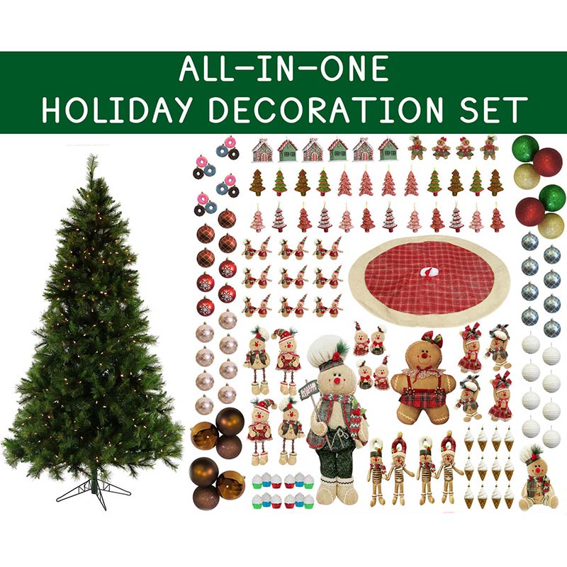- Curated 152-piece gingerbread-themed Christmas ornament set for trees up to 12-feet tall (7.5-foot tree included) with plenty more decor for your mantel, door, and floor!