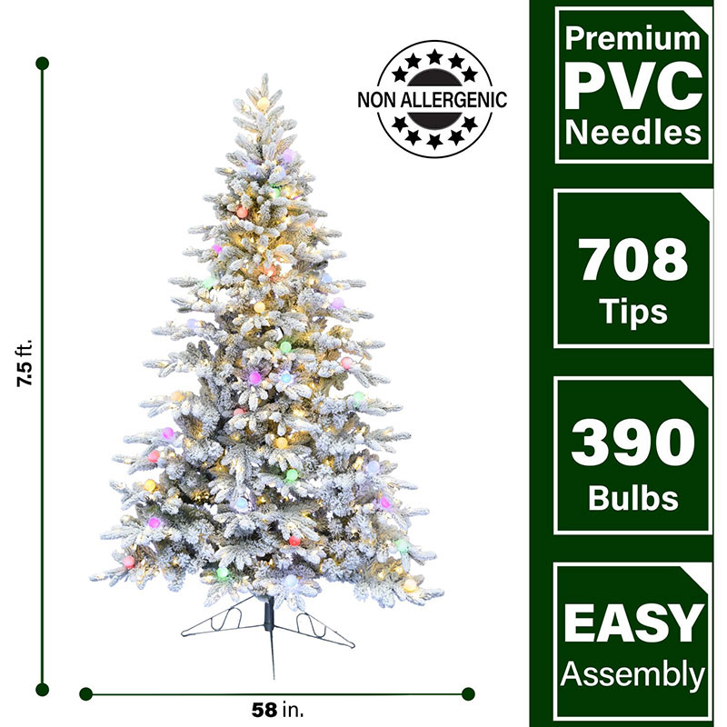 The 7.5-ft. Snowy Christmas Half Tree with Flock is an Artificial Christmas Tree from Fraser Hill Farm. This model features a slim natural-shaped half silhouette. This tree can fit seamlessly next to a fireplace, in a corner of a room, on a front porch, and so many other hard to decorate places. Fraser Hill Farm produces the most realistic artificial trees in the market and imagine never having to shop, chop, and pay for another natural tree again. With this half Tree, simply unfold out of storage and decorate! Leave your old tangled string lights behind this year. This model is prestrung with 350 warm white lights and 40 frosted G40 multicolored lights that are sure to make your tree shine and illuminate any room. The tree needles are constructed out of non-allergenic and flame-retardant materials to keep your family safe during the holiday season. These details create the look of a natural tree and require less maintenance. Designed to last, this Snowy Christmas Half tree is sure to provide more convenience and ease to your holiday season, year after year.