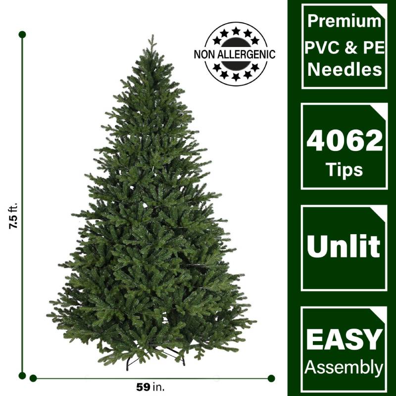 The 7.5-ft. Oregon Pine is an artificial Christmas Tree from Fraser Hill Farm. This model features a traditional silhouette with extremely lifelike foliage and all-metal hinged branch construction. Fraser Hill Farm produces the most realistic trees in the market, featuring all the long-term benefits that come with owning an artificial tree. Imagine never having to shop, chop, and pay for another natural tree again. With the Oregon Pine, simply unfold out of storage and decorate! This model is not prestrung with lights so you have the freedom to use your own. The tree needles are constructed out of non-allergenic and flame-retardant materials then painted multiple hues of green so no two are exactly alike. These details create the look of a natural tree and require less maintenance. Designed to last, this Oregon Pine tree is sure to provide more convenience and ease to your holiday season, year after year.