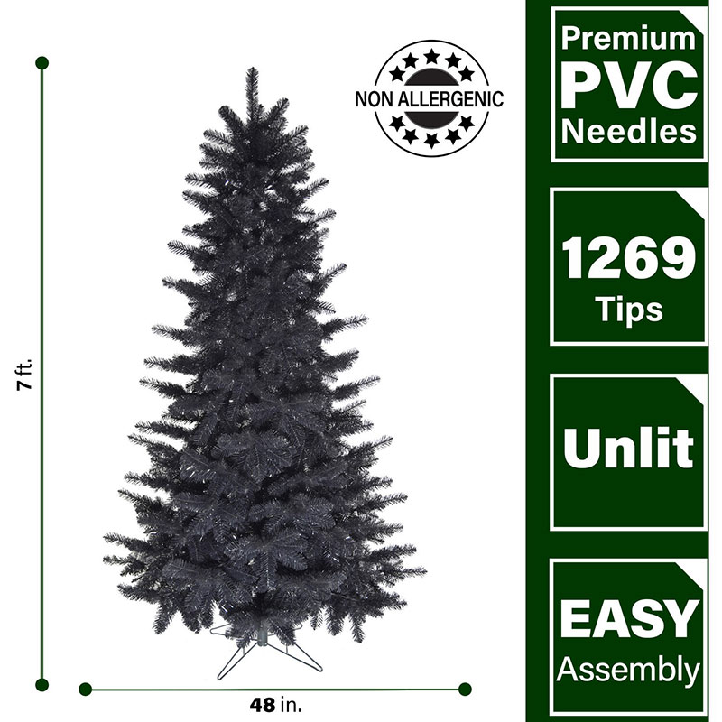 Fraser Hill Farm 7′ Black Festive Tinsel Christmas Tree without Lights Features: