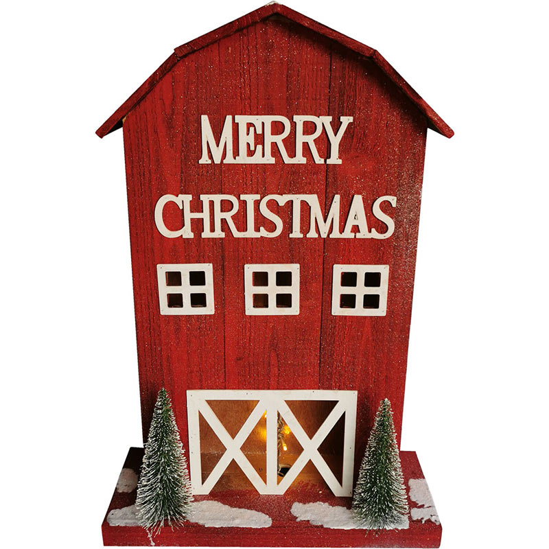 - Pre-lit wooden barn requires 3 AA alkaline batteries (batteries not included)