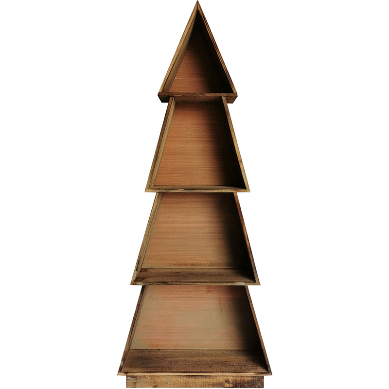 - Unique decor set includes a buffalo plaid Merry Christmas wall hanging, wooden train with snow accents, 46-inch wooden tree shelf, a birdhouse ornament, a moose lodge ornament, a metal snowman ornament, and a 28-inch pre-lit red barn