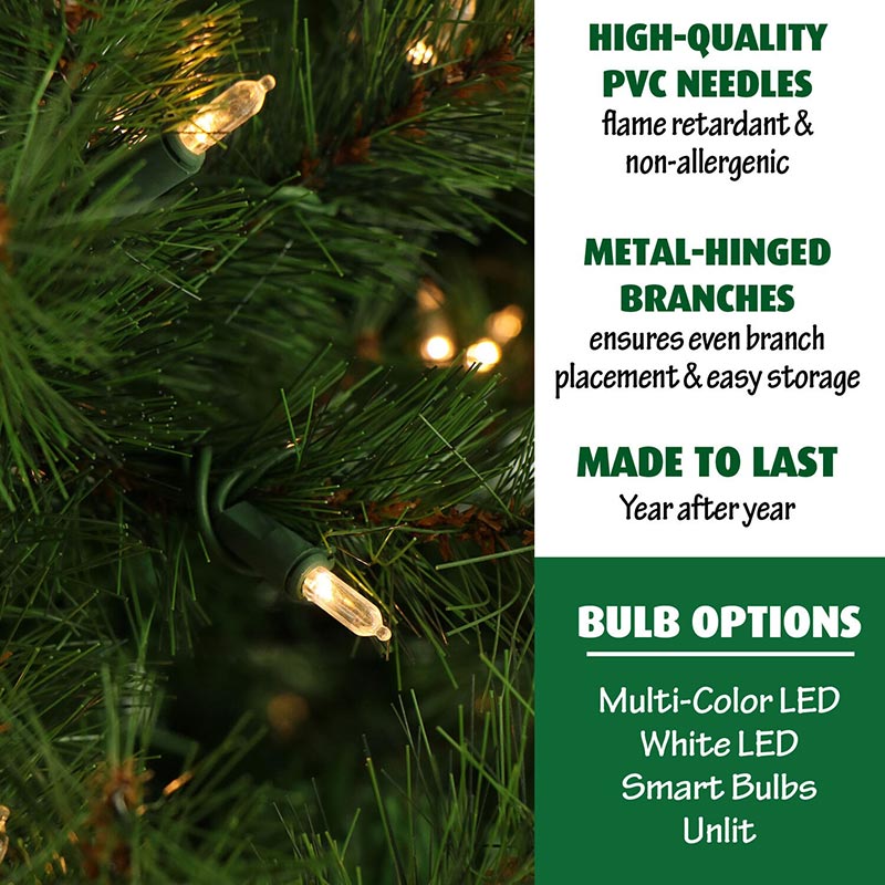 - EASY CONNECT AND STAY LIT TECHNOLOGY: Pre-strung with 600 clear smart lights that stay lit even if one bulb fails. Instant one-click connection makes assembly a snap. No wires, no hassle – one plug for the entire tree.