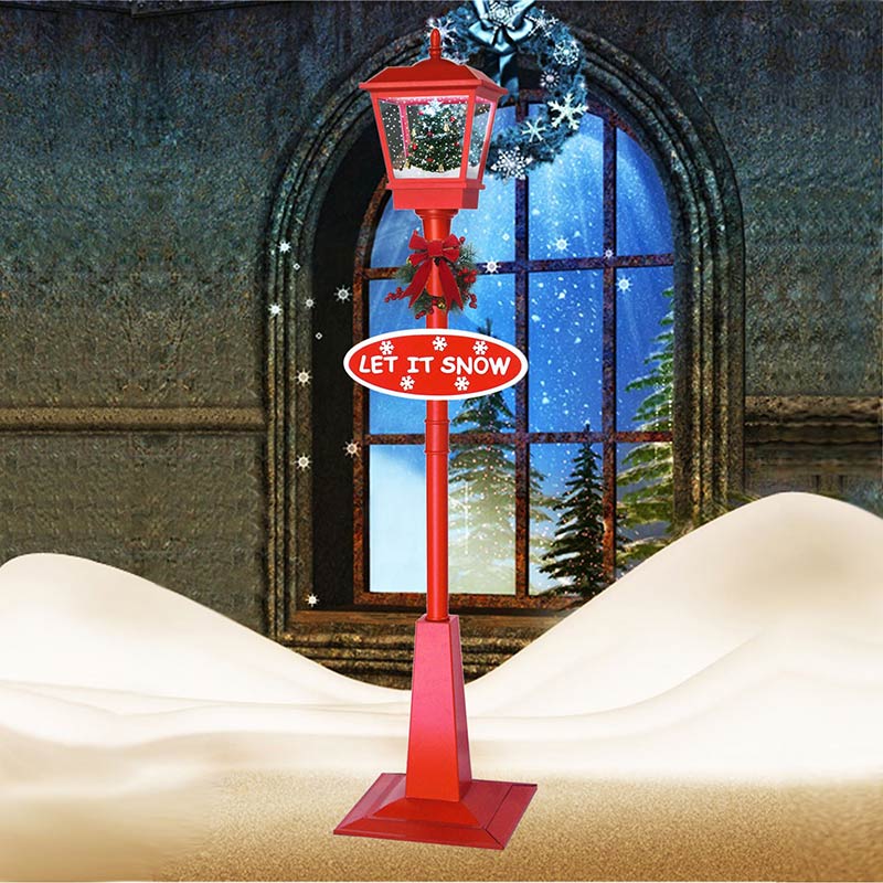 - MEASURES 6-FT. TALL: 71-in. tall snowing musical street lamp with self-containing snow function – Perfect size for porch or walkway.