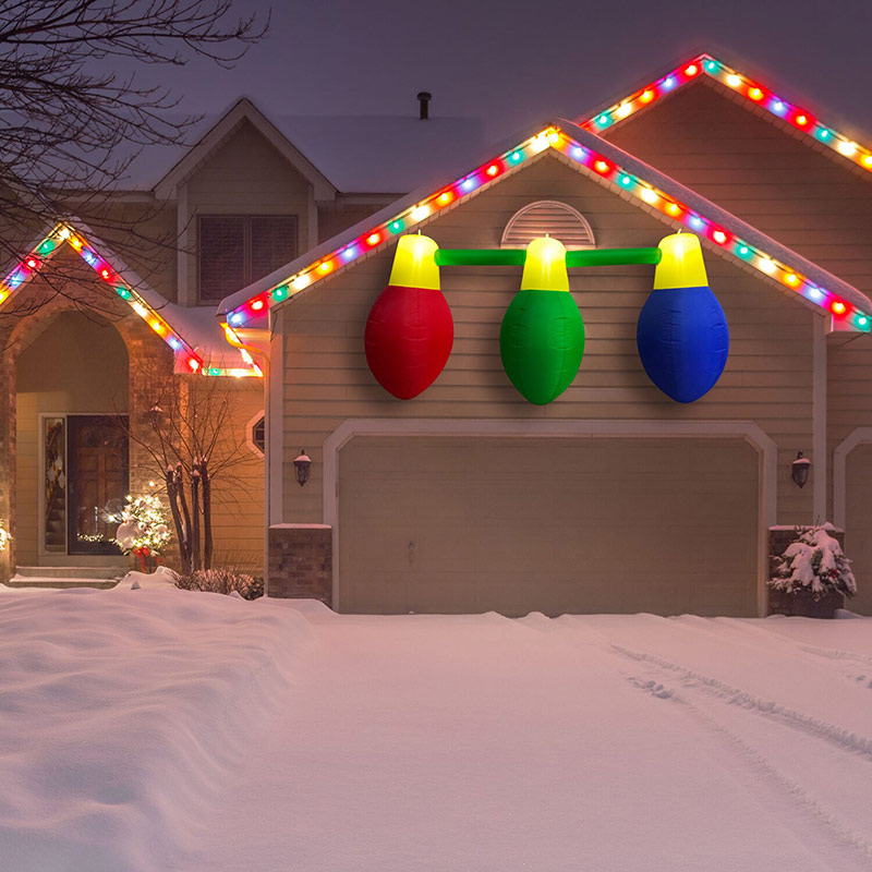 - Christmas Bulb Trio – hanging airblown inflatable illuminates day and night with 3 internal white LED lights
