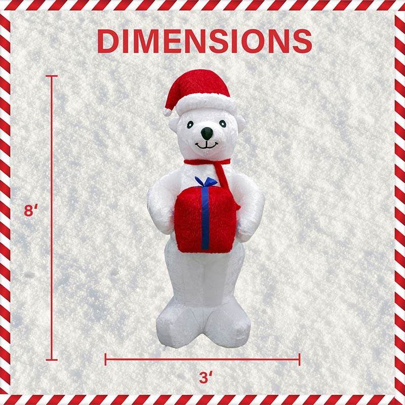 - Plush Polar Bear Holding a Gift – airblown inflatable illuminates day and night with 3 internal white LED lights