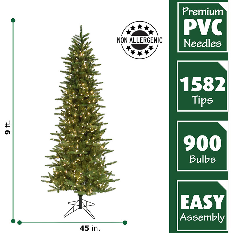 - 9.0-FOOT TALL: Standing 9.0-ft. tall with a 45″ diameter this beautiful tree makes a statement. From grand entryways to cathedral ceilings, this tree will be the focal point. A slim silhouette with layered branches will hold all your ornaments.