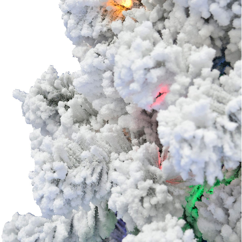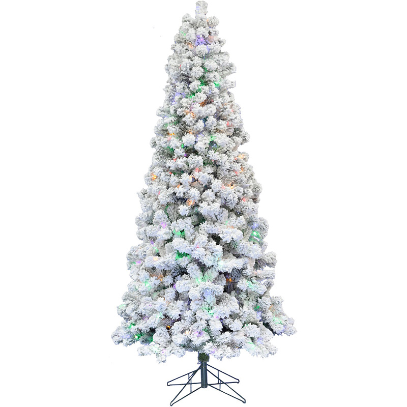 The Hillside Slim Flocked Pine is a 9-ft. Artificial Christmas Tree with music from Fraser Hill Farm. This model features a slim silhouette with ample spacing between branches for additional decorations like tinsel and large ornaments. Fully hinged branches and slender profile make this tree easy to set up in any room, big or small. A heavily flocked finish was designed to resemble freshly fallen snow that is true to season and produces a natural effect. This model is prestrung with 500 multi-color LED light bulbs and holiday cheer music that quickly operate off the convenient remote control included with purchase. Enjoy all the long-term benefits that come with owning an artificial tree. Imagine never having to shop, chop, and pay for another natural tree again. With the Hillside Slim, simply unfold out of storage and decorate!