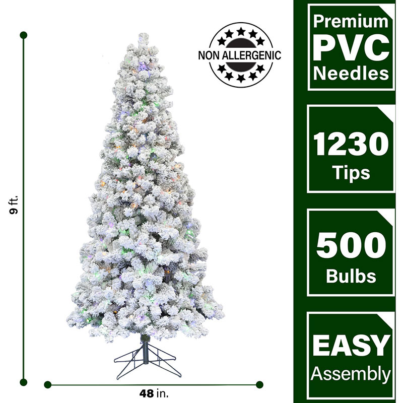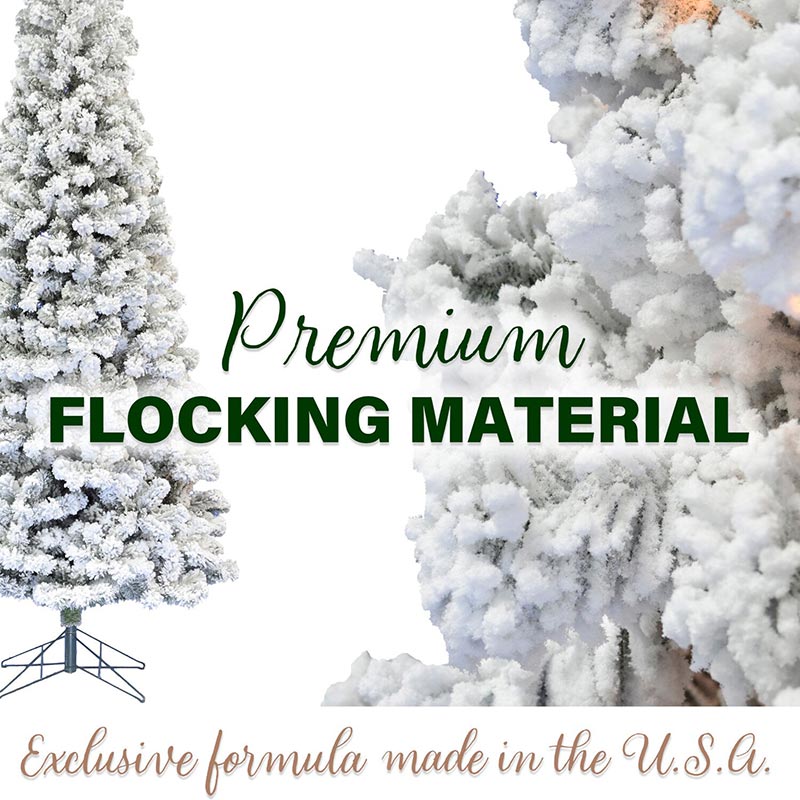 - NOT YOUR AVERAGE ARTIFICIAL TREE: 1230 heavy snow covered lifelike tips create the appearance of a natural cut tree. Our premium fade resistant flocking material is MADE IN THE USA.