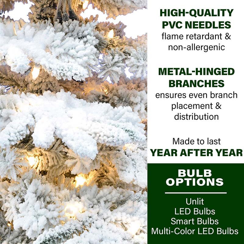 - NOT YOUR AVERAGE ARTIFICIAL TREE: 1818 snow covered lifelike tips create the appearance of a natural cut tree. Our premium fade resistant flocking material is MADE IN THE USA.