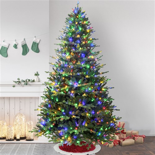 - Pre-strung with 1000 10-function, 5MM multi-color LED lights; instant one-click connection makes assembly a snap with one plug for the entire tree
